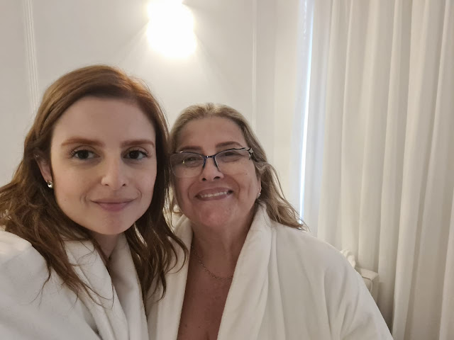 Logo na entrada fomos muito bem recepcionadas. Solicitaram que escolhêssemos o aroma do óleo da massagem, eu escolhi lavanda que amo e minha mãe Alfazema. Depois nos ofereceram chá e optamos por Camomila.